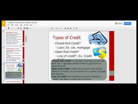 There are two types of consumer credit: installment credit and revolving credit.